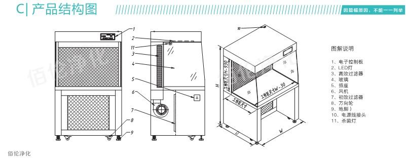 采用超薄型無隔板過濾器,將靜壓箱尺寸縮到最小,再配以不銹鋼臺面和玻璃側(cè)擋板,使整個工作區(qū)顯得寬敞明亮。
